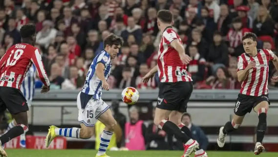 然而,當(dāng)他們迎來國王杯半決賽與皇家社會(huì)的這場(chǎng)關(guān)鍵對(duì)決時(shí),卻再度陷入了困境。此役,畢爾巴鄂競技排出了經(jīng)典的4231陣型,古魯澤塔就像一把鋒利的尖刀,頂在最前面,隨時(shí)準(zhǔn)備給對(duì)手致命一擊。伊尼亞基·威廉斯、烏奈·戈麥斯和羅伯特·納瓦羅組成的三叉戟,如同三把利刃,為球隊(duì)提供著強(qiáng)大的進(jìn)攻火力。中場(chǎng)由豪雷吉薩爾與亞歷杭德羅·雷戈搭檔雙后腰,他們就像球隊(duì)的中場(chǎng)屏障,既要負(fù)責(zé)攔截對(duì)手的進(jìn)攻,又要組織球隊(duì)的進(jìn)攻。四后衛(wèi)則是萊奎、伊克爾·蒙雷亞爾、拉波爾特和博伊羅,他們組成了一道堅(jiān)固的防線,守護(hù)著球隊(duì)的大門。帕迪利亞把守球門,他就像球隊(duì)的最后一道防線,隨時(shí)準(zhǔn)備化解對(duì)手的射門。整體首發(fā)陣容身價(jià)約為7530萬歐元,雖然與對(duì)手皇家社會(huì)高達(dá)1.27億歐元的陣容配置相比,略顯遜色,但足球從來都不是單純用金錢來衡量的游戲,畢爾巴鄂競技的球員們用他們的斗志和拼搏精神,向?qū)κ职l(fā)起了挑戰(zhàn)。